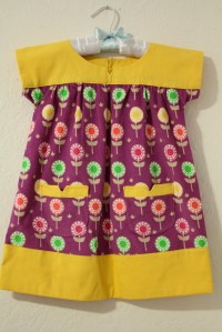 When we found out we were pregnant, 5 years after our son was born, a big part of me wanted it to be a girl–the part of me that likes to sew and knit! I have so enjoyed having a boy that the non-crafty part of me wanted another one, but while I can do without the frilly pink bedding and dolls, I desperately wanted to knit beautiful sweaters and make fabulous sundresses for my own child. Alas, it’s boy number two for us. So here is a dress for my three year old niece Lucy instead. This one is a pattern from Oliver + S.