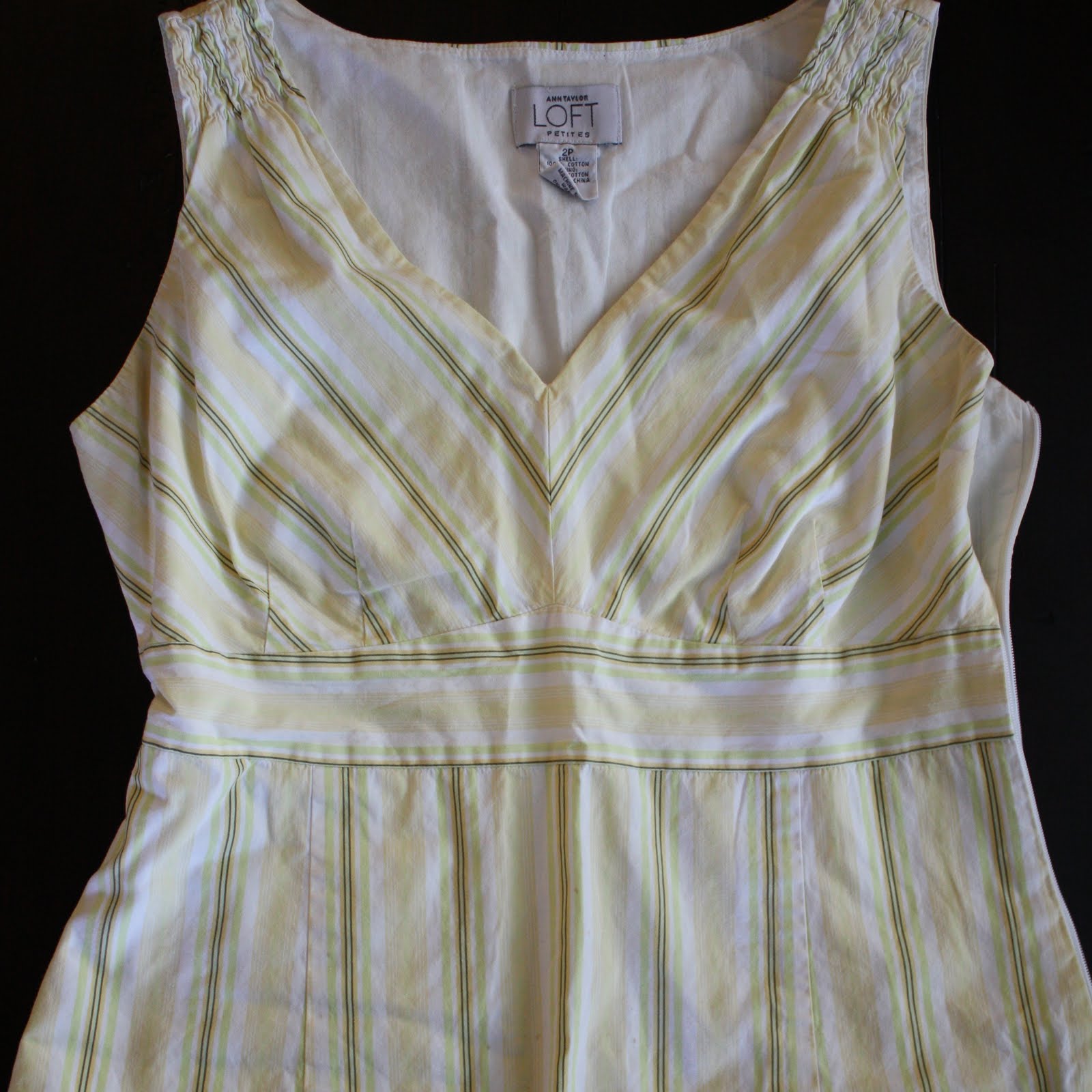 Obviously, the most critical aspect of recreating the top was matching the stripes. I had to cut two versions of the bodice to get the right placement of the V, the zipper was applied twice to match seams/stripes (see my tip below), and much care was taken to space the vertical stripes on the “skirt” so it would appear seamless (there are actually 6 panels on the skirt). Other than the darts breaking the lines in the bodice, I couldn’t be happier with the result.