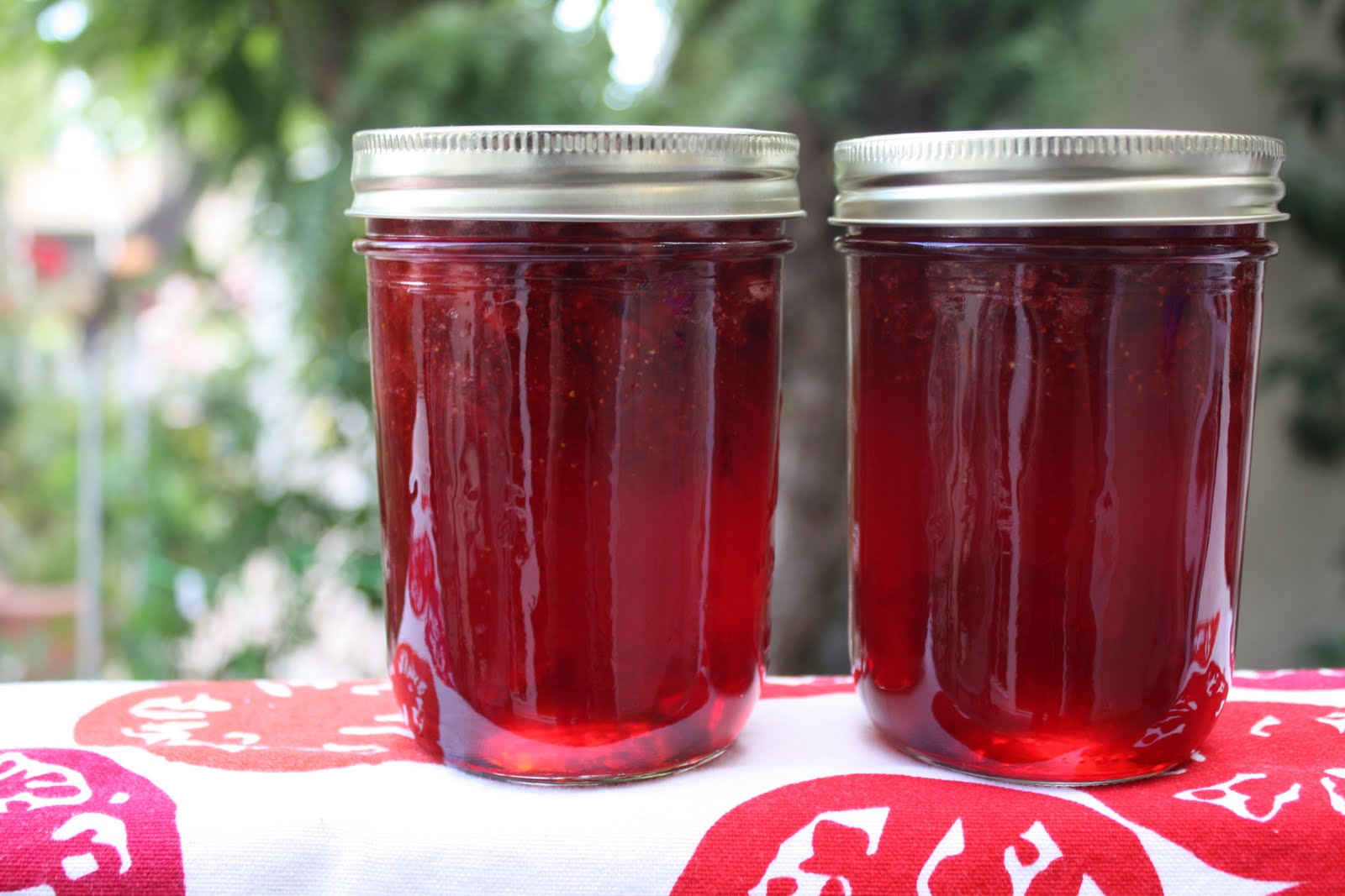 This weekend, we went with our good friends and all four of our little boys to go strawberry picking at Coastways Ranch in Davenport, CA. It was a beautiful day and the kids really enjoyed having their own containers to collect berries. It’s so very hard to resist the bright red beacon of the perfect berry, so we all picked way too much. A failed strawberry pie became a pretty decent ice cream topping, but with still many, many berries left, I made up our first batch of jam of the season. Some gorgeous Weck canning jars are in the mail, heading to my address as we speak, but perfectly ripe berries wait for no one (or jar). While strawberry jam is tasty (especially on scones with clotted cream), my boys like olallieberry best. Another month for those!