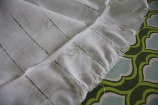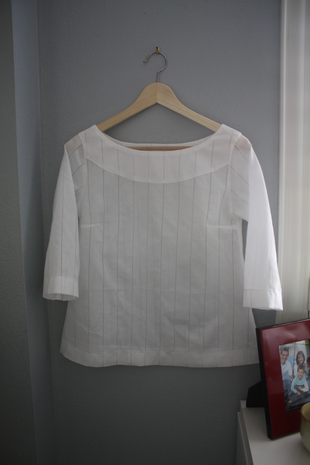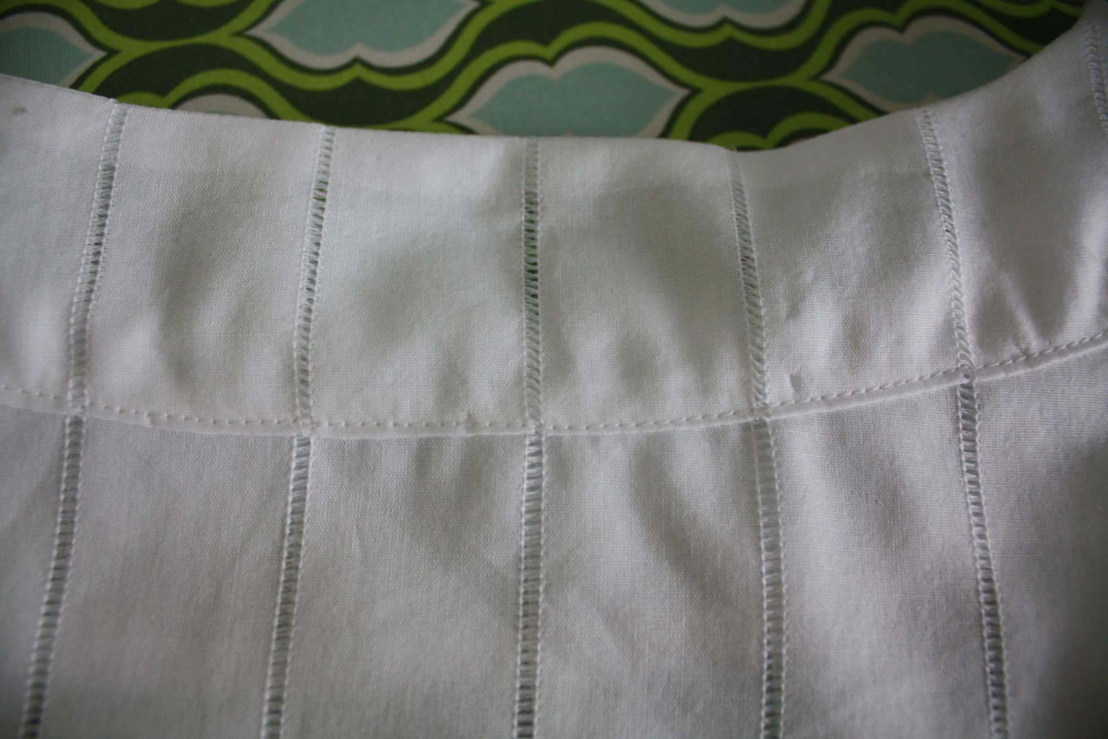 With summer approaching, I went with a semi-sheer white cotton lawn with rows of faggoting throughout that I had in my stash. If I remember correctly (ha!) it was part of a collection of vintage apparel fabrics my local quilting store acquired from a shop in San Francisco that went out of business.