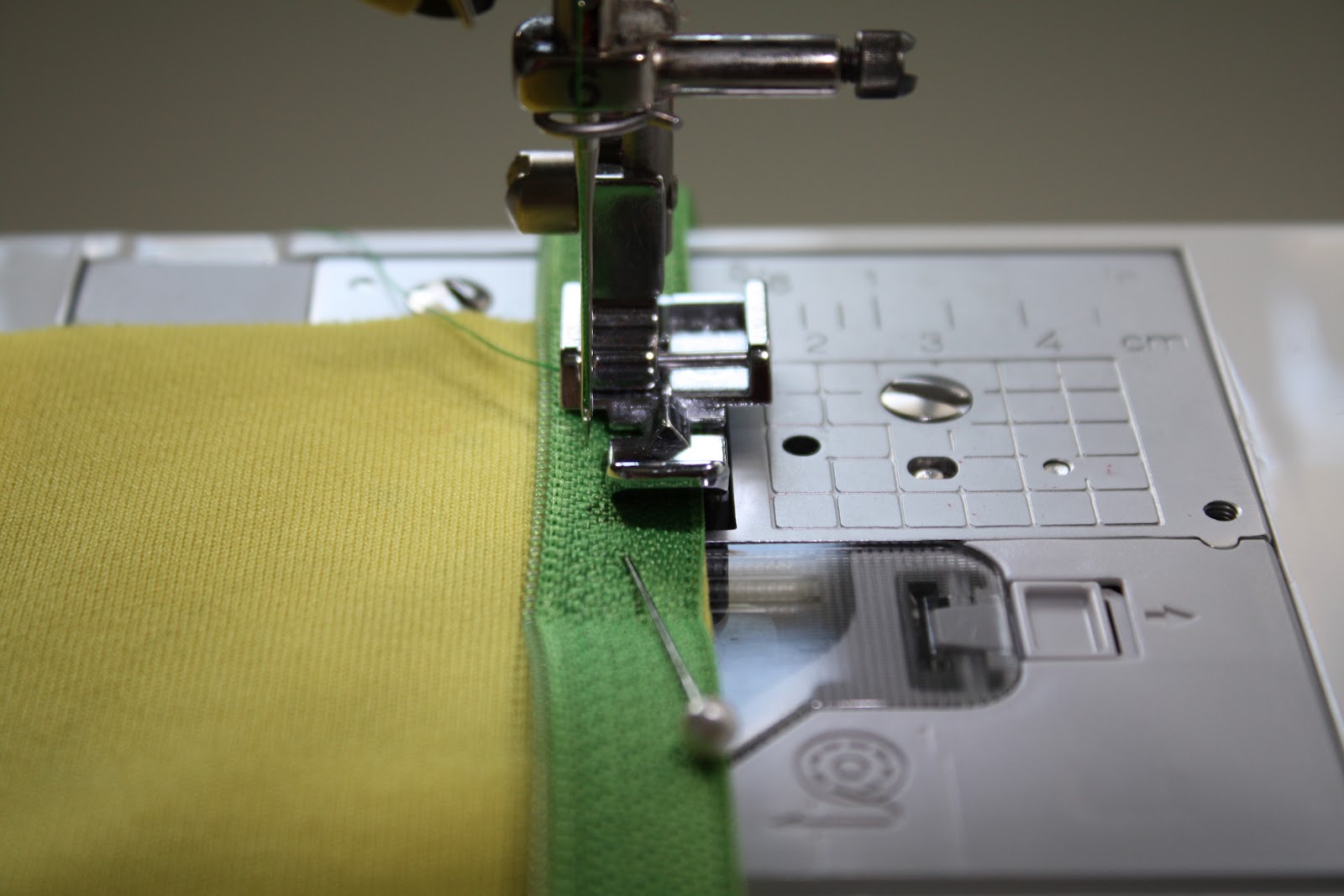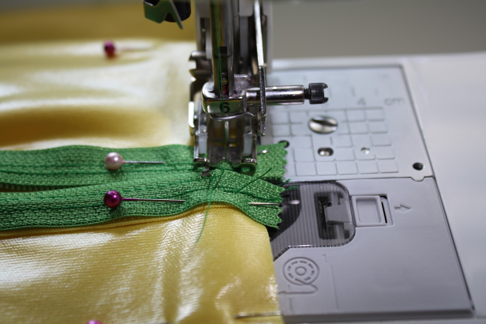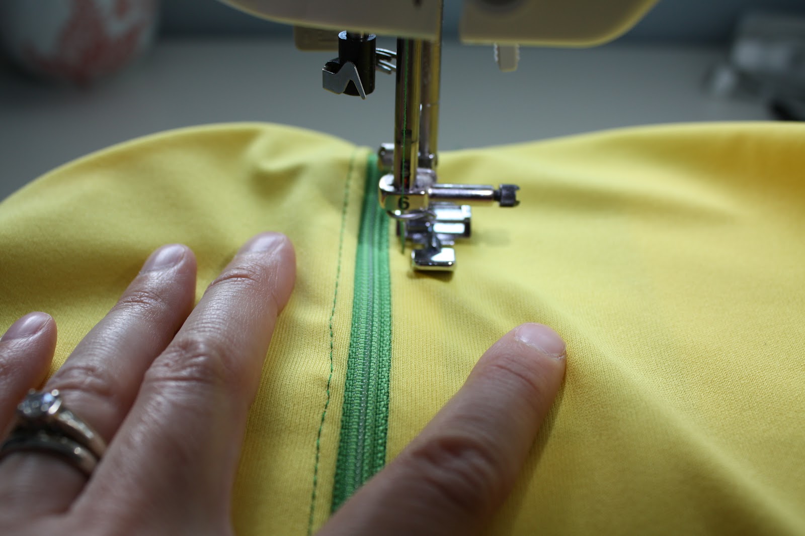Then, using your zipper foot, seam close and to the right of the zipper teeth.
