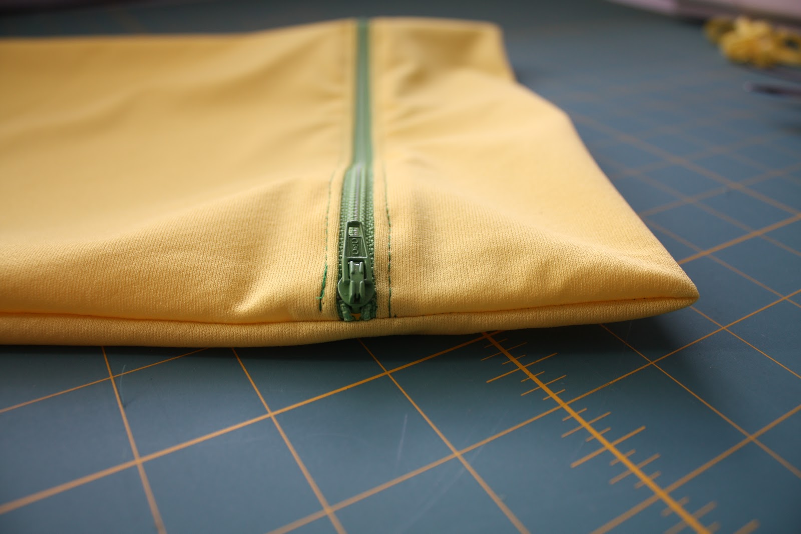 Now, and this is super important, open up the zipper–at least a few inches–so you can turn the bag later. The added bonus is that with the big zipper pull out of the way, you can sew a nice straight seam.