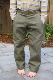 I lined the pockets and waistband with a fabric scrap from my stash and it might be the last time I can use “cute” fabric for his clothing, even for parts that are unseen by the other kids. I just can’t use skulls or camo for my little guy, even if it’s the popular thing to wear. My son is in first grade and I know eventually the time will come when a hand-made item from mom is going to be an embarrassment, but for now, he was pleased to wear his new pants.