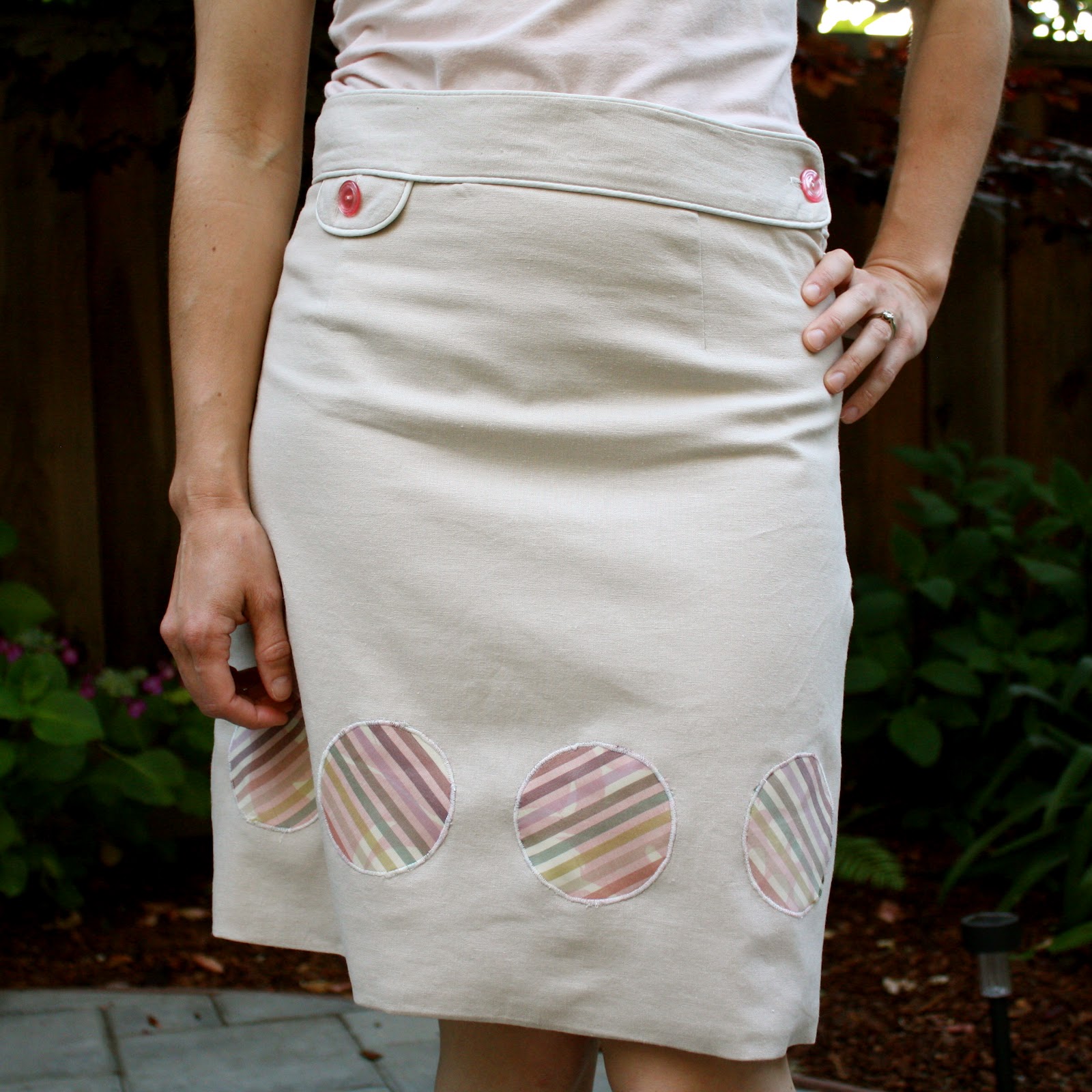 I had purchased several different fabrics for this challenge, but settled on a lightweight linen I had in my stash because I really, really wanted to add some fun appliques. I drafted the skirt from my measurements (thanks Whipstitch!), so no store-bought patterns were harmed in the making of this skirt 🙂