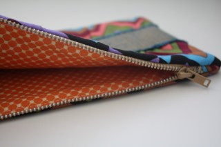 I used a vintage metal zipper and lined it in a fun orange pattern. Seriously, what makes this bag so fun to plan and make is the myriad of ways you can combine fabrics and textures.