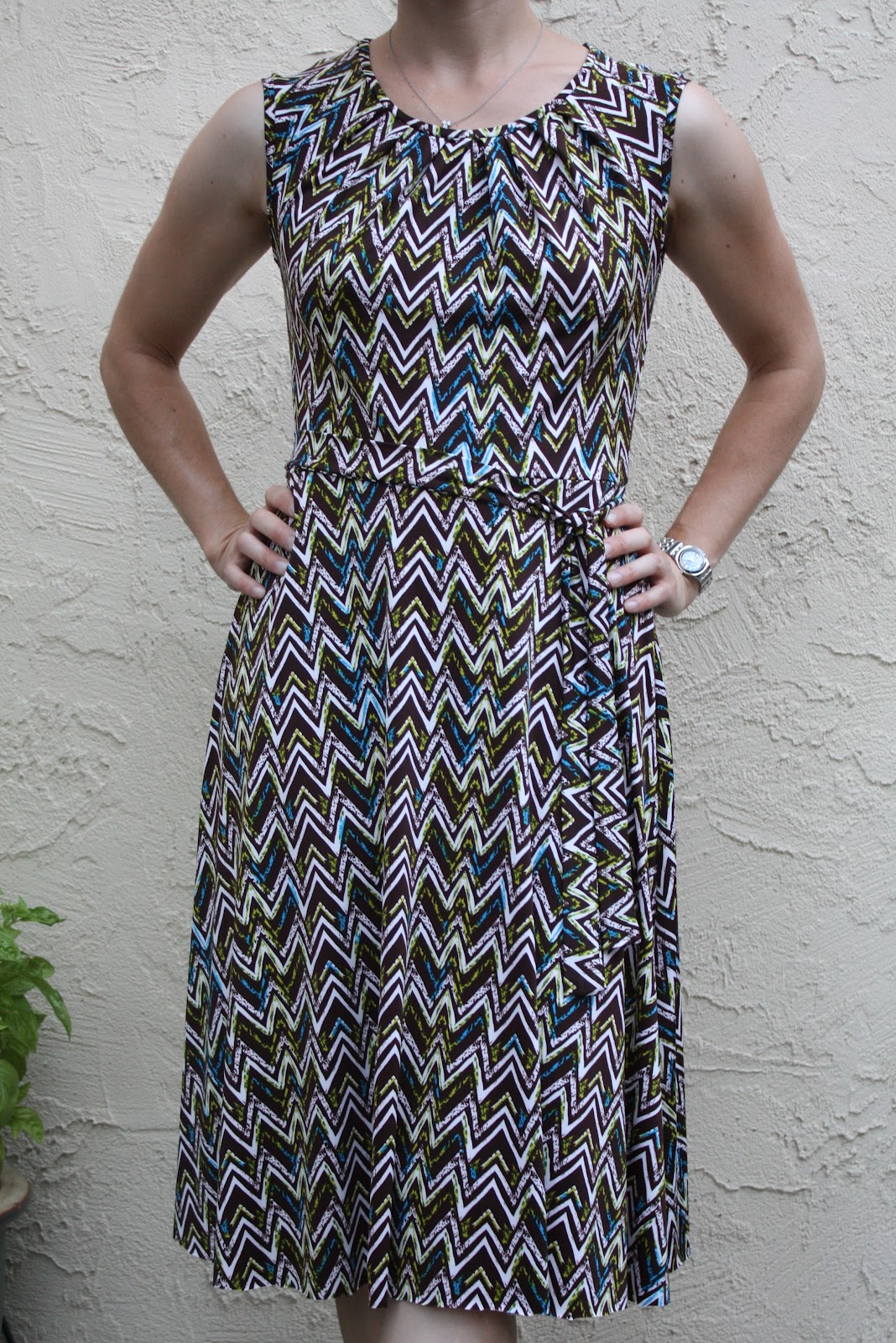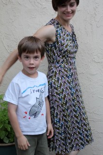 Overall, I liked the pattern a lot–if I had more experience with slinky knits, it would have been super to quick to sew up. The slightly crazy fabric was my savior, though–it hides several mistakes 🙂 The neckline and silhouette are flattering, and it’s super comfortable! Win!