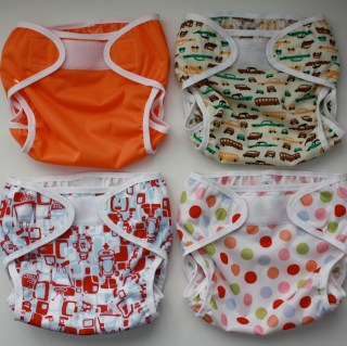 Four diaper covers in process:
