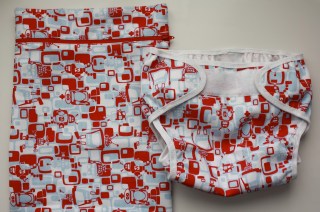 With the remainder of the red and blue robot PUL, I made a new waterproof bag for the daycare. It’s kind of like matching your shoes and handbag, right? 🙂