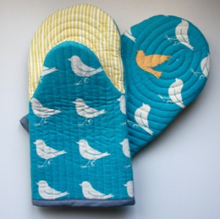Also loved these birds (Oh Deer! by MoMo for Moda) and stripes (Simpatico by Michelle Engel Bencsko for Cloud9 Fabrics) for my oven mitts (pattern found here).