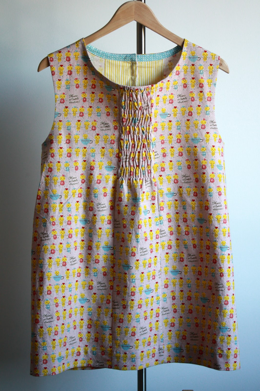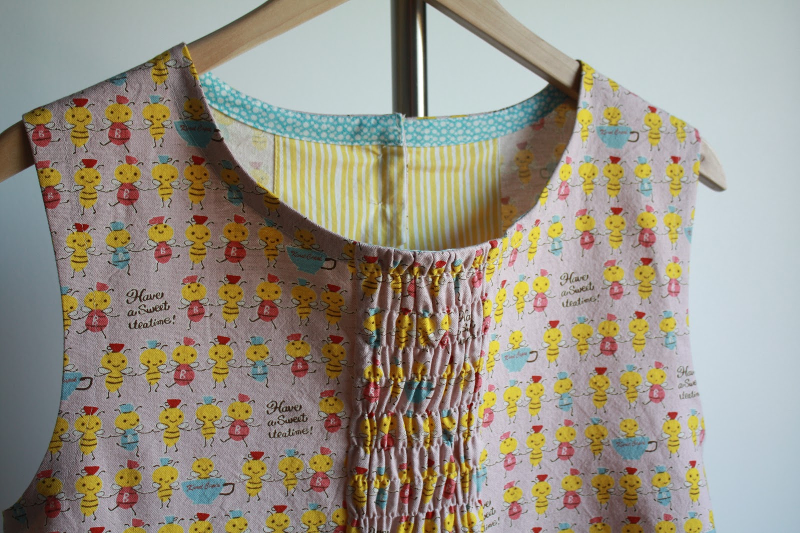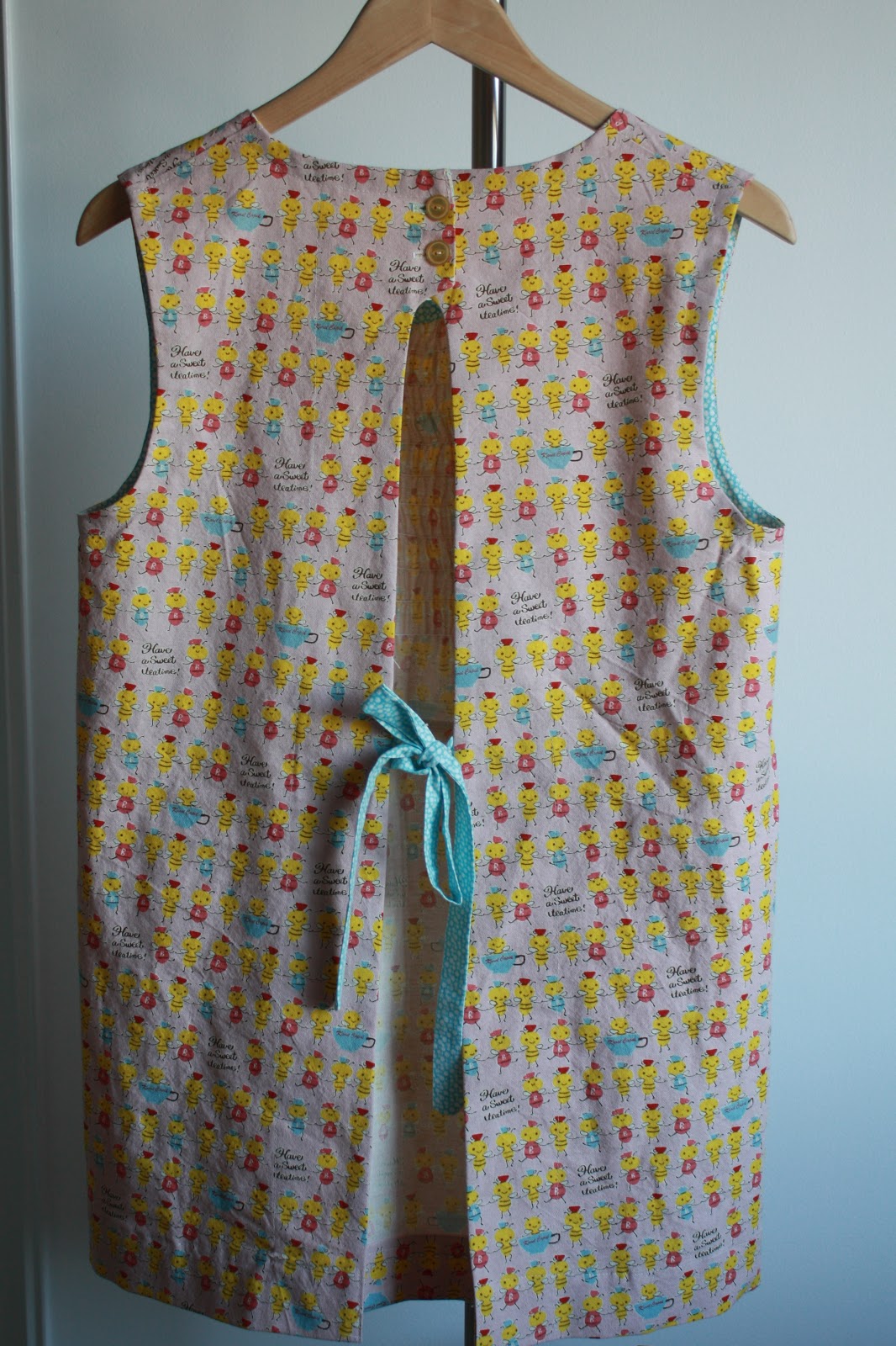 The neck and armholes were finished with matching bias binding (I’ll have to write another post extolling bias tape makers) and a contrasting fabric facing for the back openings.