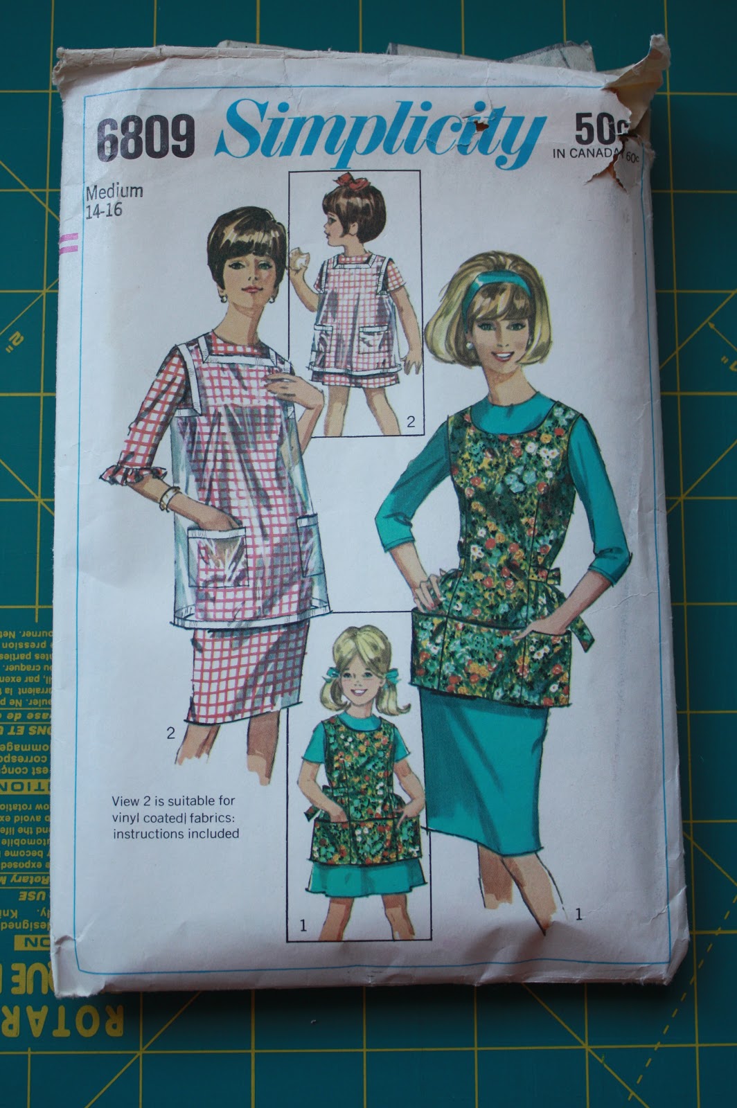 As my last post of the year, I wanted to share the two aprons I made for my youngest’s daycare teachers. Both were based on this vintage pattern, though I made enough changes to the first apron that it’s virtually unrecognizable as the same style: