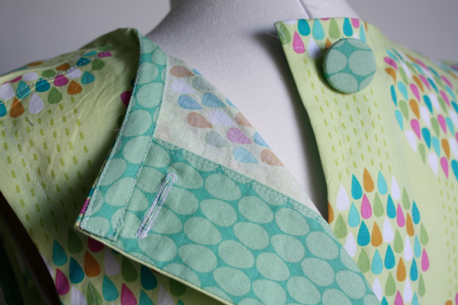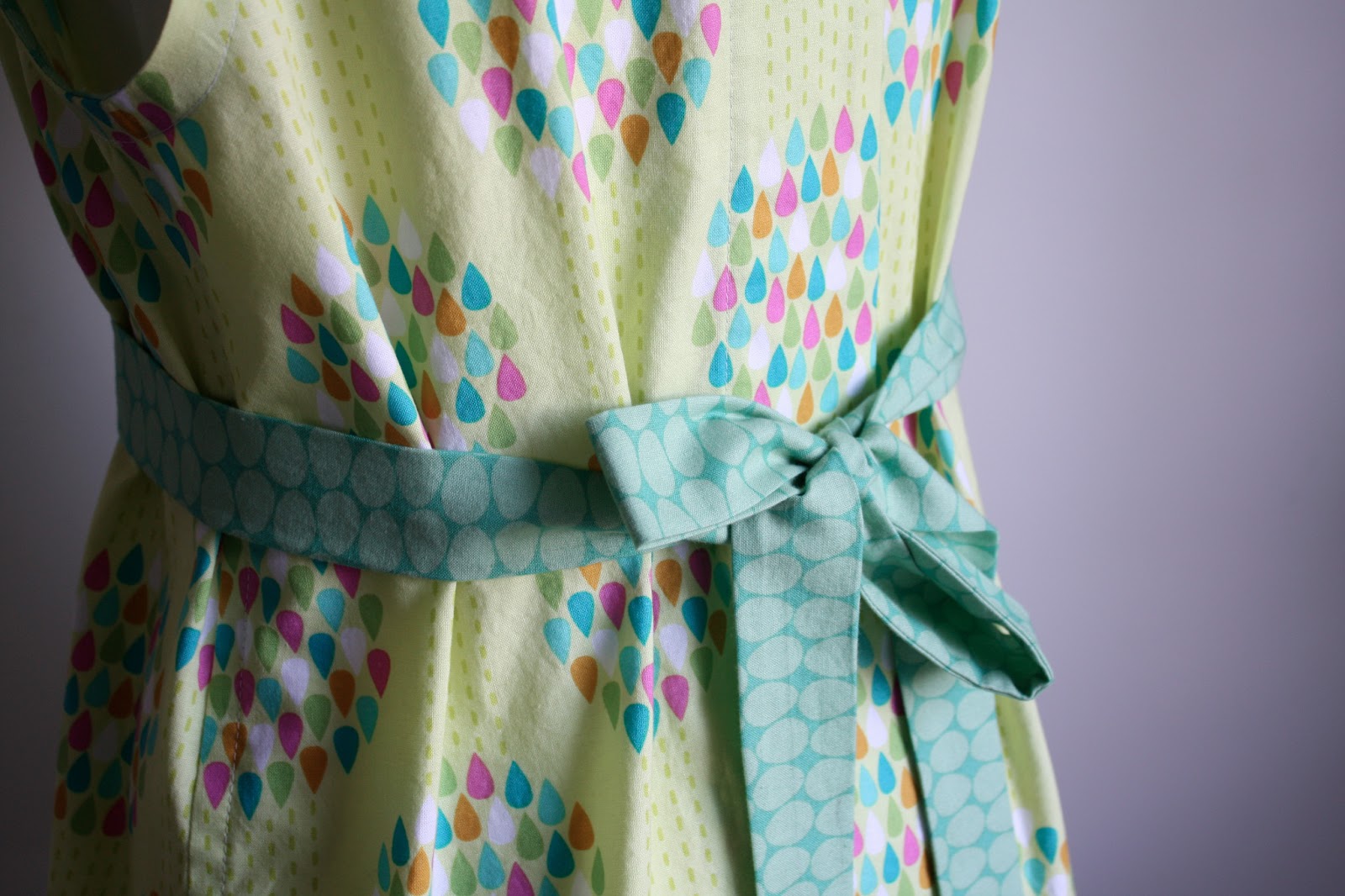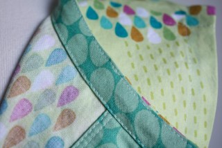 She said she loved spring colors, and green in particular, so the main fabric, from the Summersault collection by Erin McMorris, was perfect (and on sale!). The contrasting fabric felt risky when I was picking them out, but I like the combination in the end (Frippery by Thomas Knauer).