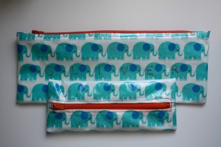 Much better! For comparison, we have the two together. The bigger bag will certainly get use–all of our writing and drawing implements are segregated in their own oilcloth-zippered bags, and they’re also fabulous for plane rides and other trips.