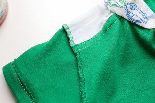 I brought the little boy to the fabric store and he picked out the kelly green knit all by himself. Not my first choice, it worked well enough with the car print.