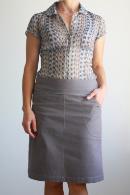 Even though we were away on vacation for most of the allotted time of the first challenge, I couldn’t pass up the opportunity to participate in the Super Online Sewing Match! So, instead of 6 days to draft and sew an A-line skirt (using this tutorial at Craftsy by Deborah Moebes), I had 2. And sitting in bumper to bumper traffic to get to Logan Airport and then multiple flight delays before taking off for San Francisco (due to the awful plane crash), I was certain that I’d never get home to even have that much time! But thankfully I’m home, the skirt was started and finished in a single day, and I’m pleased with the result.