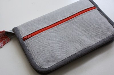 Finally, when I do it again (and I will–seriously, these are relatively quick to whip-up!), I plan to sew along the upper edge of the zipper pocket (see photo, above), straight through the lining, before attaching it to the “inside” of the wallet (this will make sense when you sew it for yourself).   This would make one smaller pocket (where my phone is), instead of a giant pocket, which goes around to the backside of the wallet.  No one wants to hunt that much for wandering coins!