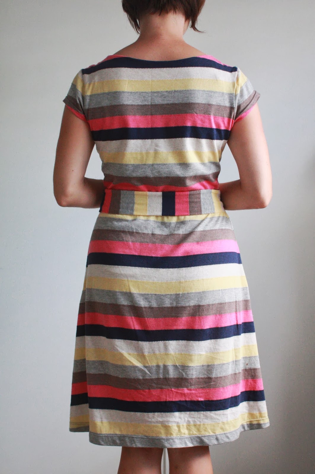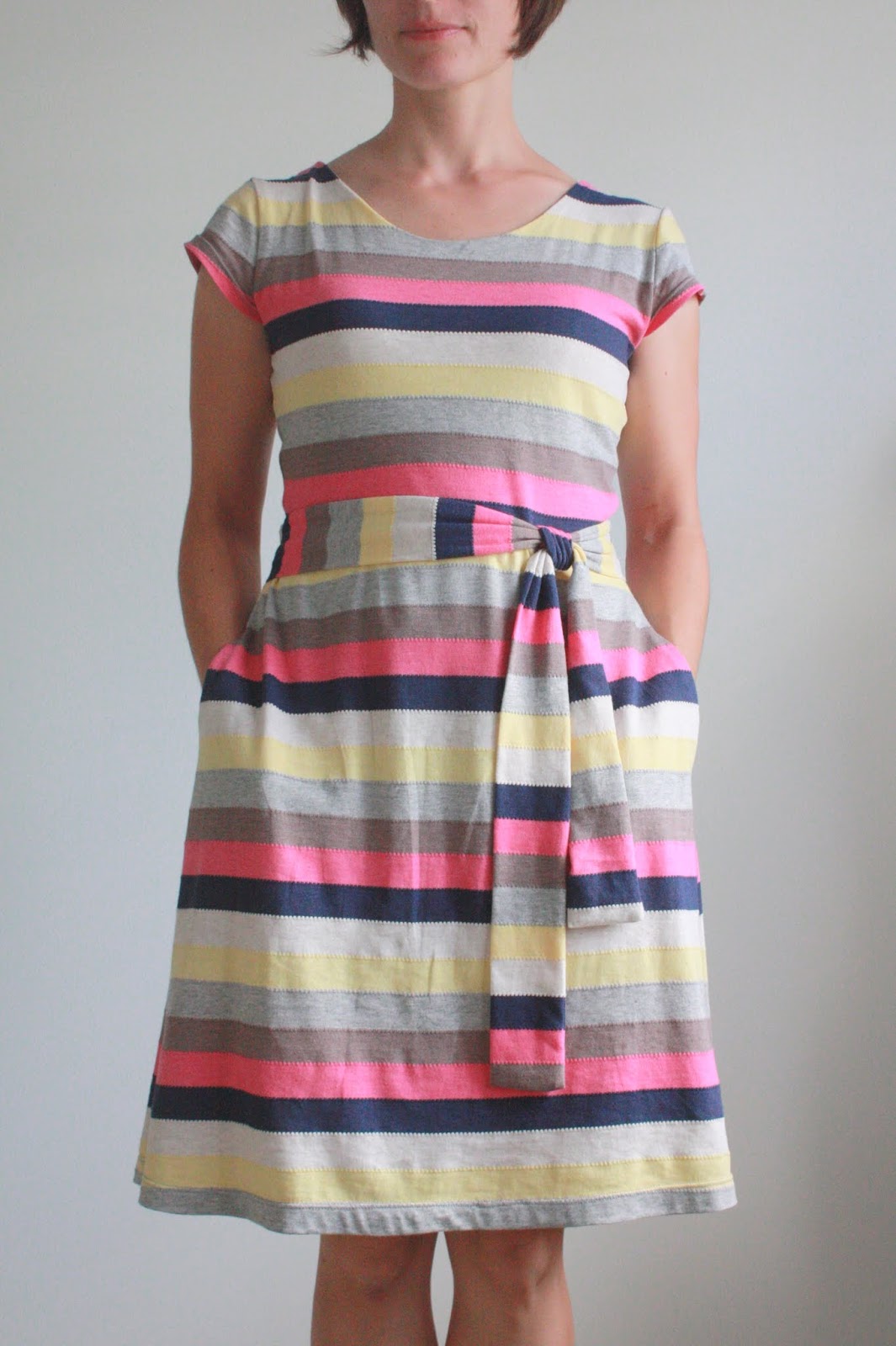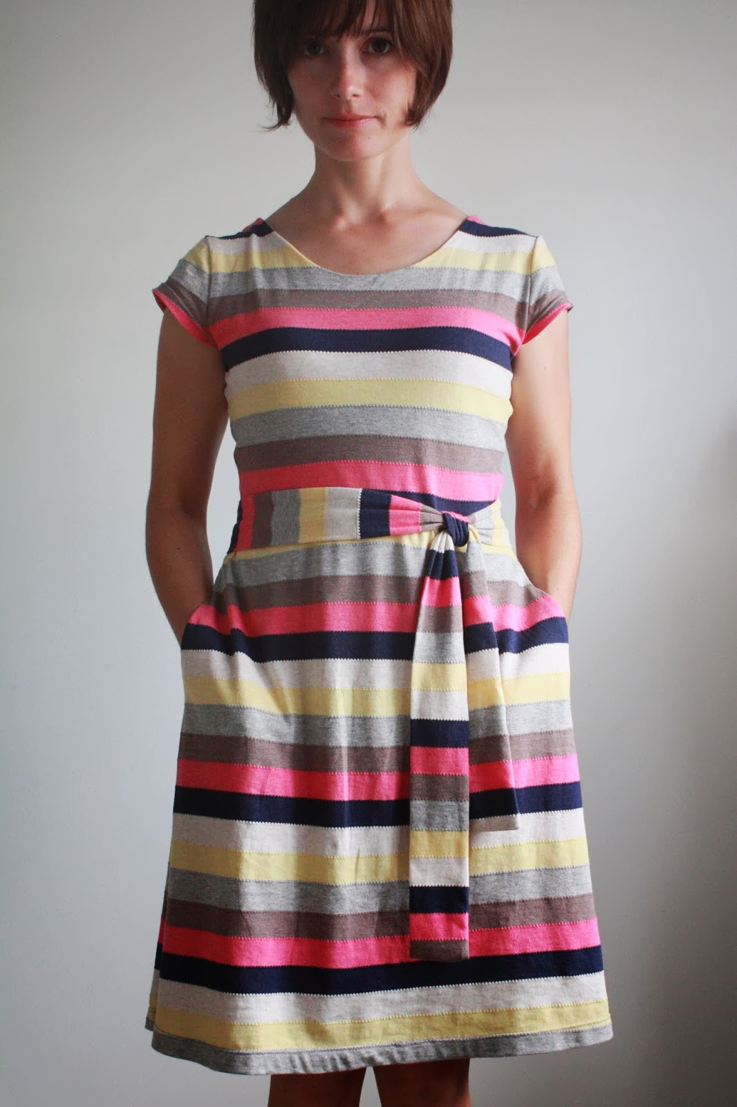 I love this! Your striped fabric paired with that adorable pattern is very, “Kate Spade”. It's a beautiful dress.