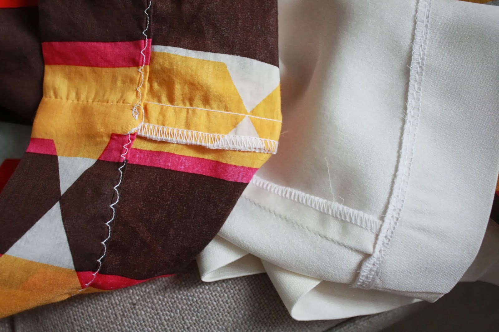 The seams were serger-finished, with a blind-stitched hem for the outer skirt and a regular straight stitch for the lining.