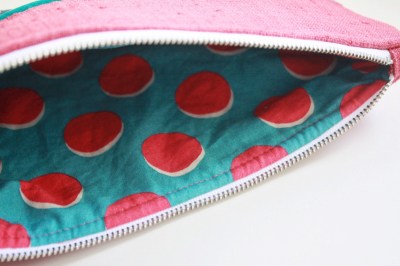 The lining fabric is an over-sized shadow dot (also from Hart’s). It seemed perfect for a someone who likes red and turquoise, no?