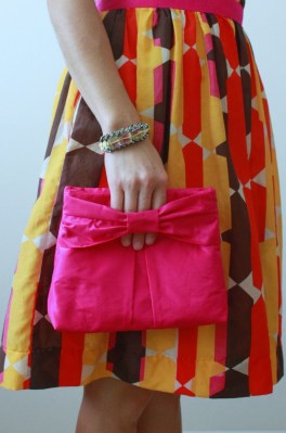 I’m so excited to finally share a project that I tested a few weeks ago for my friend and bag pattern-maker, Samantha! With two weddings coming up next month, it was exceptionally good timing that Samantha asked me to try out her pattern for the adorably-named “Little Bow Pleat Bag“–a stylish (yet roomy!) clutch. Her request came right before I finalized my fabric purchases for my Cambie dress, so I bought some extra hot pink silk taffeta, knowing it would be put to use for this bag. Maybe it’s a little matchy-matchy, but I don’t care!