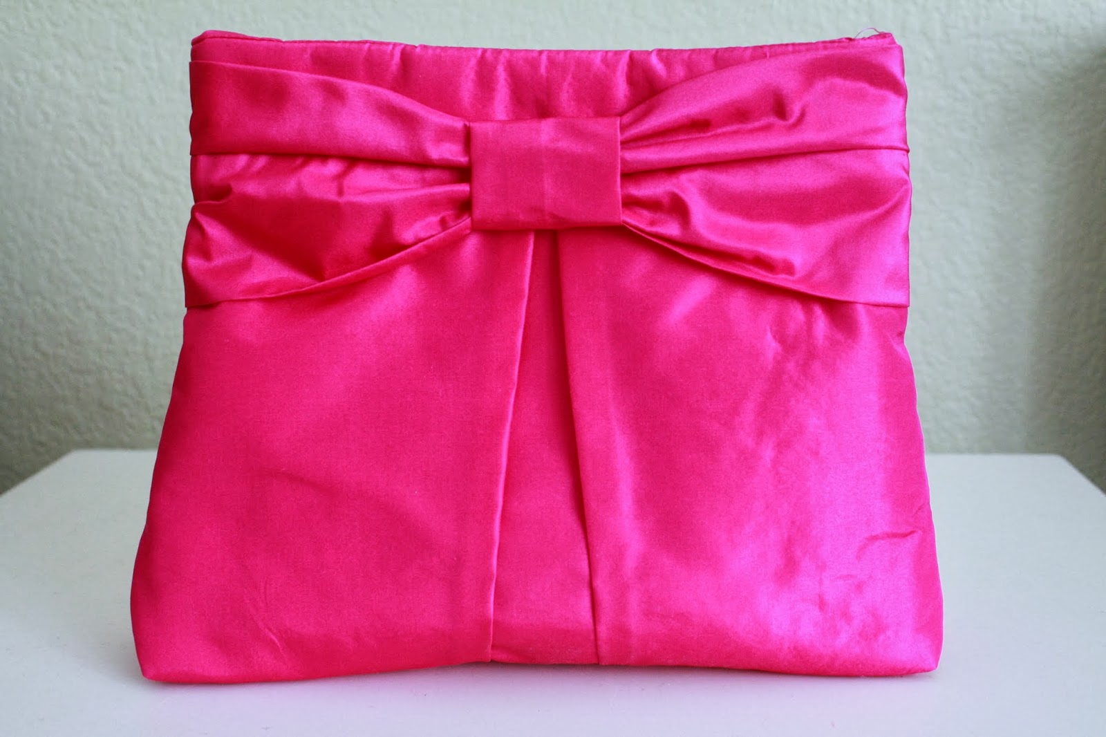 I’m so excited to finally share a project that I tested a few weeks ago for my friend and bag pattern-maker, Samantha! With two weddings coming up next month, it was exceptionally good timing that Samantha asked me to try out her pattern for the adorably-named “Little Bow Pleat Bag“–a stylish (yet roomy!) clutch. Her request came right before I finalized my fabric purchases for my Cambie dress, so I bought some extra hot pink silk taffeta, knowing it would be put to use for this bag. Maybe it’s a little matchy-matchy, but I don’t care!