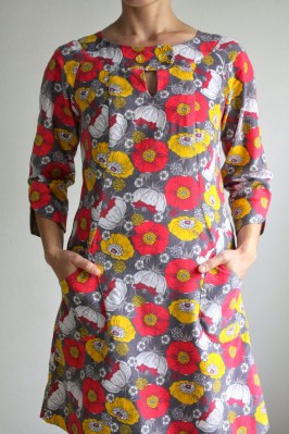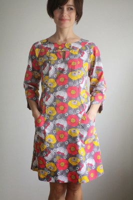 I love this dress so much! Too bad the pattern is OOP :(. All the mod details are so sweet and your fabric choice is perfect!