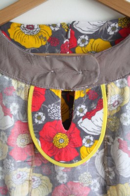 The fabric is a springy, but is respectful of a chilly morning in baby wale corduroy (purchased at Fabric.com here). The flowers remind me of California poppies. Considering it’s corduroy, it’s surprisingly lightweight!