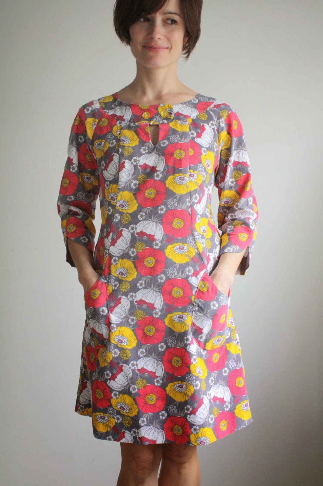 I love this dress so much! Too bad the pattern is OOP :(. All the mod details are so sweet and your fabric choice is perfect!