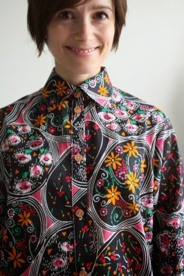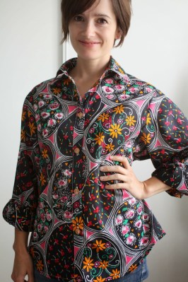 For whatever reason, this shirt gave me such a hard time to construct (over 6 hours! What?!). I went into it thinking the sewing would be the least of my worries, but the right and wrong sides of this fabric are only barely distinguishable, so I ended up putting wrong sides out on multiple occasions. So much of this top was ripped out and redone. As I’ve mentioned to my husband, patternmaking class really brings out the obsessive-compulsive perfectionist in me!