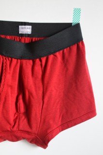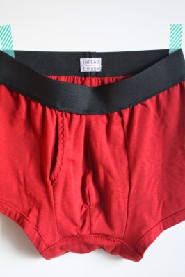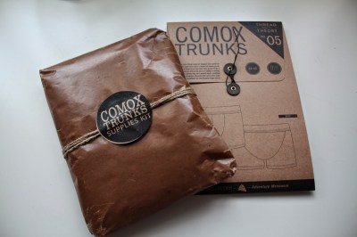 Huge fan of Thread Theory that I am (their recent and incredible pea coat pattern here), I was super excited that they’ve designed and provided us lady sewists with a quick, useful, and (dare I say) sexy item of clothing to make for our men: the Comox Trunks. Thank you! And they’ve made it uber easy by offering a kit, complete with lovely bamboo fabric, elastic waistband, and cute little tag label. Love their beautiful packaging!
