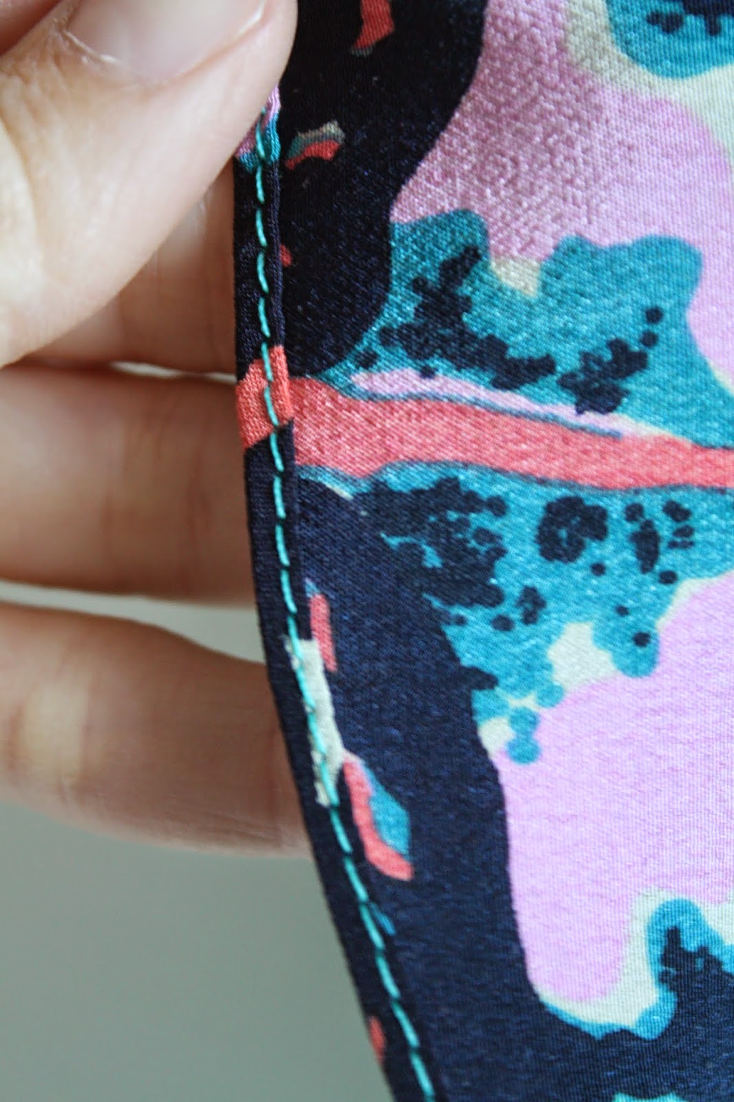 For the sleeves and hem, I used my narrow rolled hem foot, which worked (mostly) beautifully.