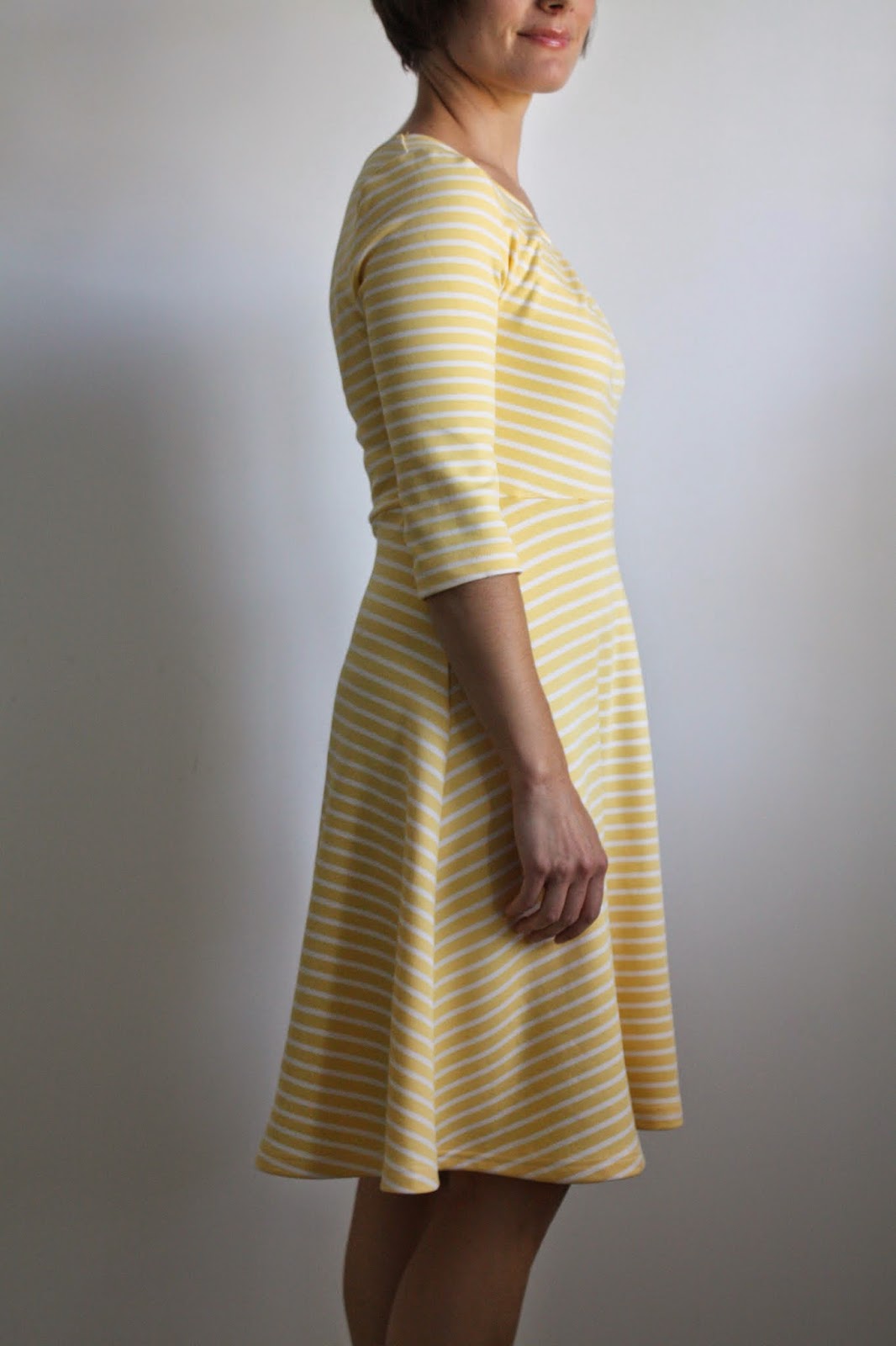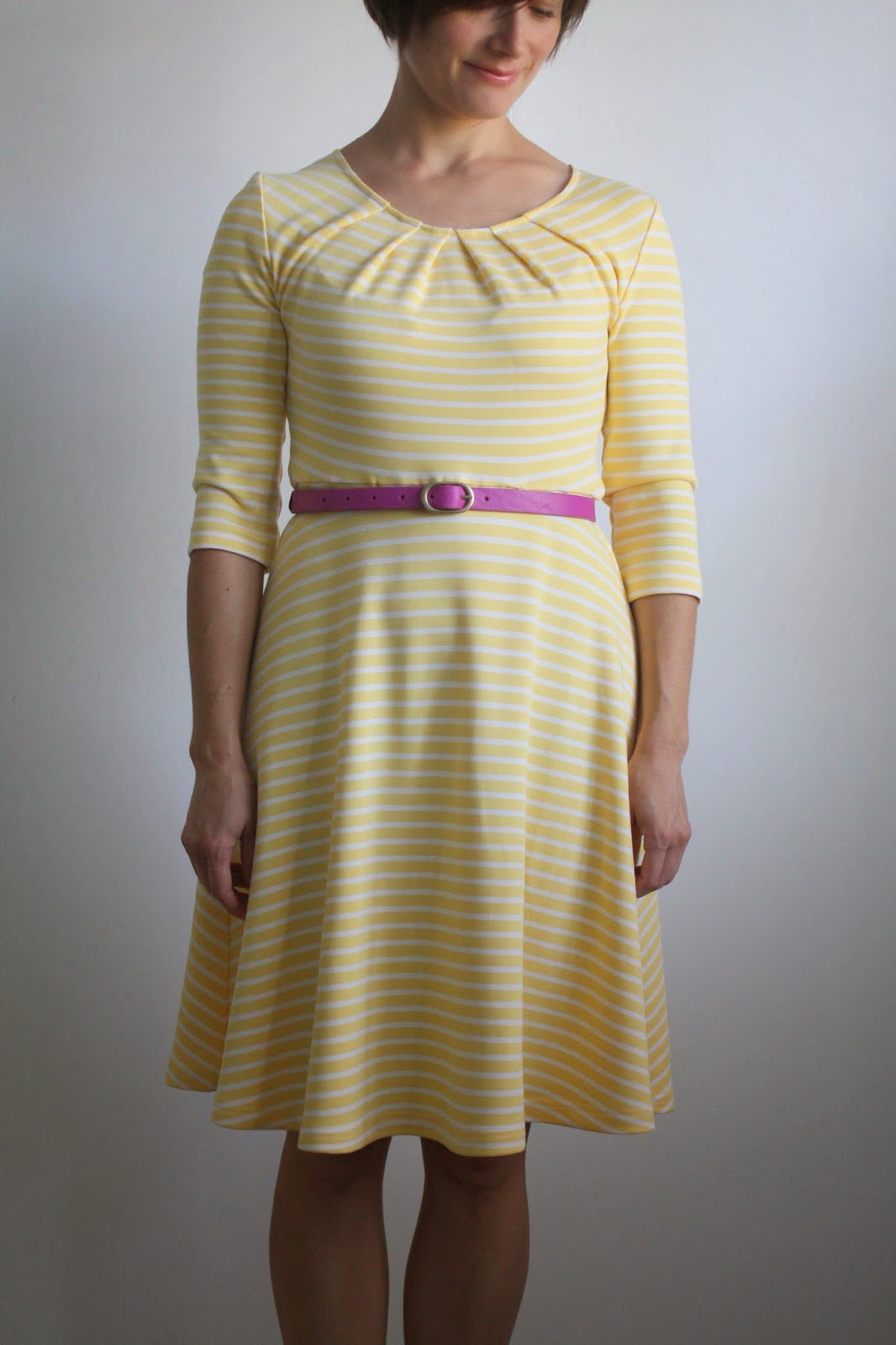 very cute and you can wear yellow. looks great on you. YES needs a belt. And I think this dress pattern would be perfect for winter in wool jersey or a sweater knit.