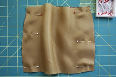 Now, with right sides facing, pin the side seams of the lining and fashion fabric. Obviously, the lining fabric is wider, so they will not lie flat.