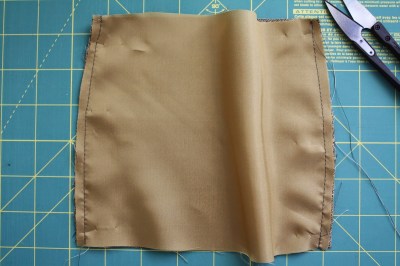 Turn the fabric inside out. Both right sides should now be facing out.