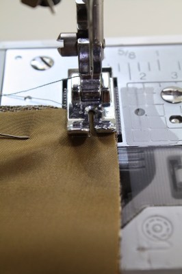 Once pressed on both edges, the fabric and underlining pieces should be even, with no bunching, pulling or creasing. Since you haven’t trimmed any of the fashion fabric from the sides, you can sew the pieces as normal, with a 5/8″ seam allowance.