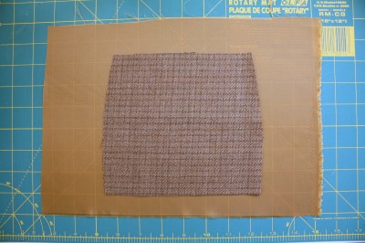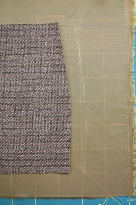 For this tutorial, I’ve made a little “mini” version of the skirt Front so the big picture is easier to see. Start with cutting out the front and back pieces in fashion fabric.