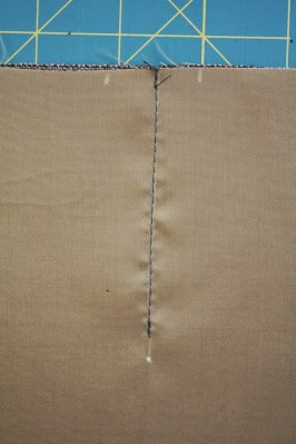 Sew down this marked line (the middle of the dart), beginning your stitching a centimeter or so away from the vanishing point and sewing toward the raw edge.
