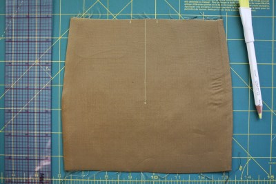 Lay the pieces on your well-pressed lining fabric. Use a few pins or weights to keep the fabric from shifting around. Then, along the vertical seams only (side/ back seams), mark an additional 5/8″ seam allowance.