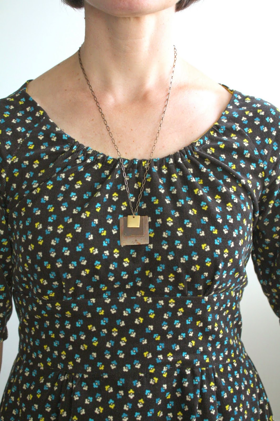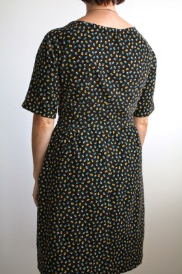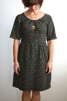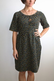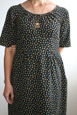 Okay, so that was a rough critique of the Dahlia pattern.  While I’ve liked many of Colette’s other patterns, I’m definitely not a fan of this one.  I’m sure with a different fabric it could look a bit more stylish, but with all the other issues, I won’t be making another.  I’d like to wear this still, so I’ll be on the lookout for a scarf, or bold necklace…something to make it more modern.