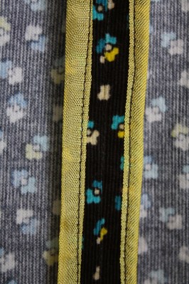 I could have drafted a lining (or used an underlining)….could have made facings instead of using bias tape….but I’m lazy (and have plenty of pattern drafting to do for class at the moment).  So, I used a baby wale cotton corduroy, which makes it slightly more acceptable to not have a lining.
