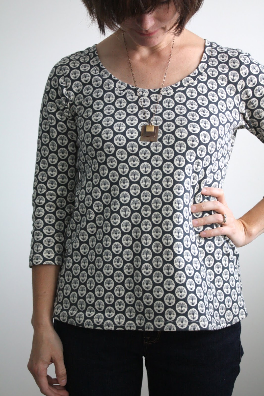 So the free Plantain tee pattern was released by Deer & Doe, what, like 20 years ago? I had printed the pattern, taped it all together and then promptly slide the entire thing under the bed in my sewing room. I don’t recall the circumstances that put it there, but there it sat for months. Months. I finally got tired of sucking it up in the vacuum cleaner, so I pulled it out and made the darn top.
