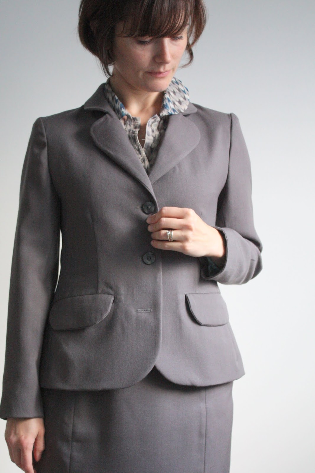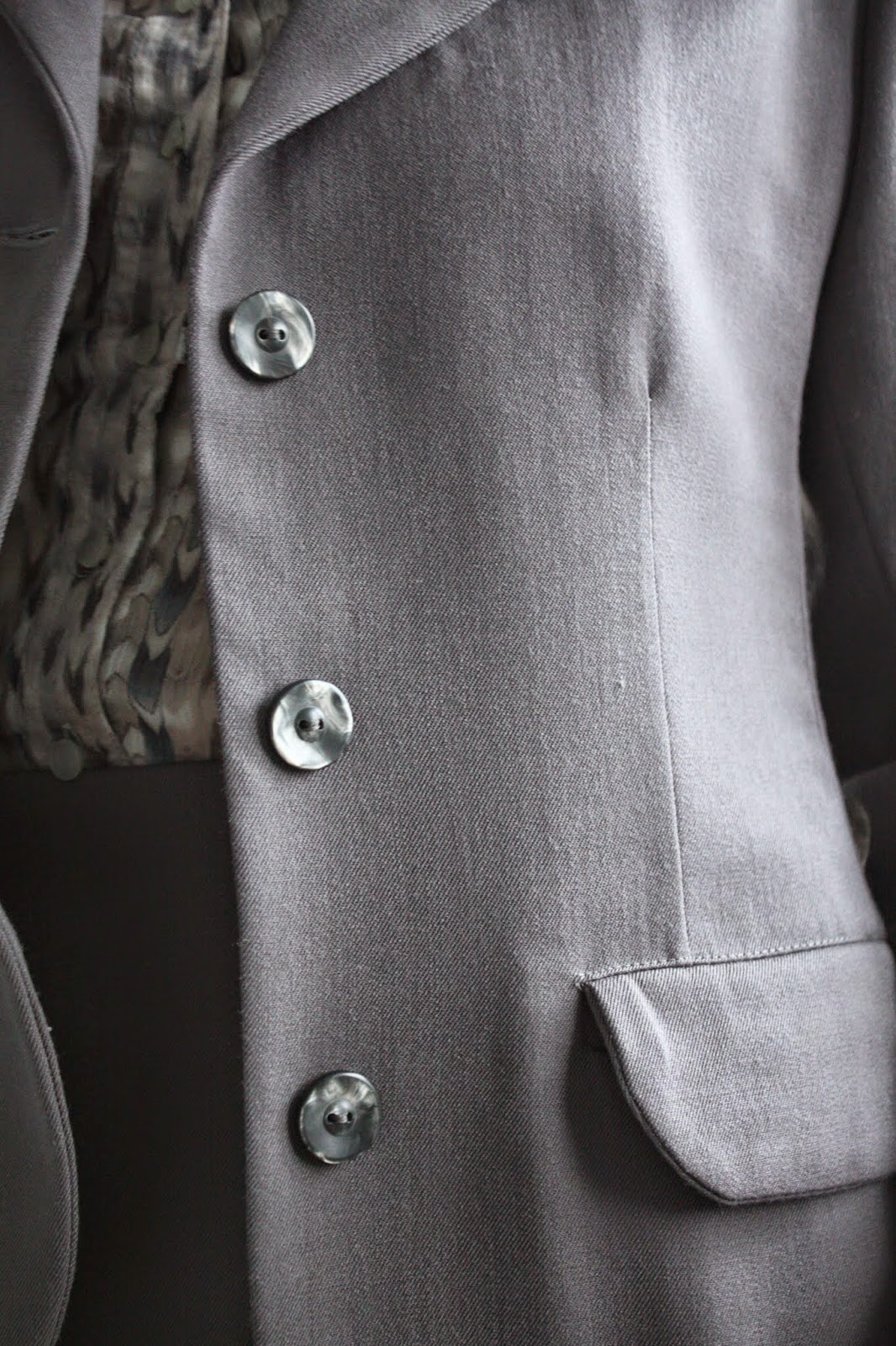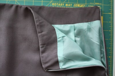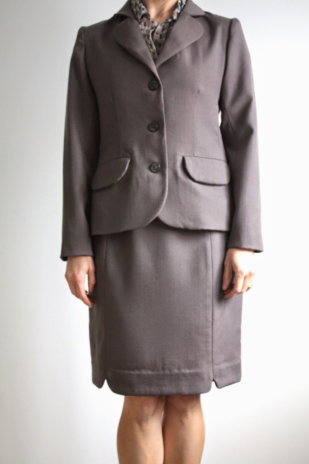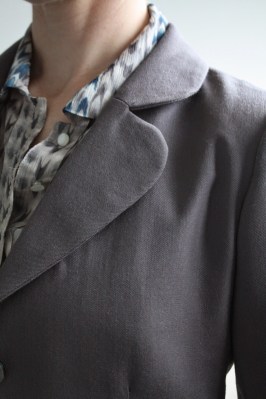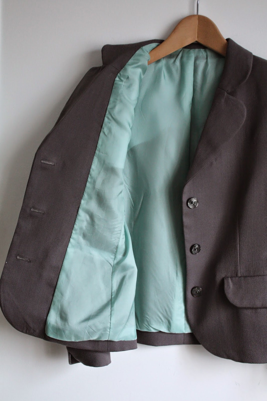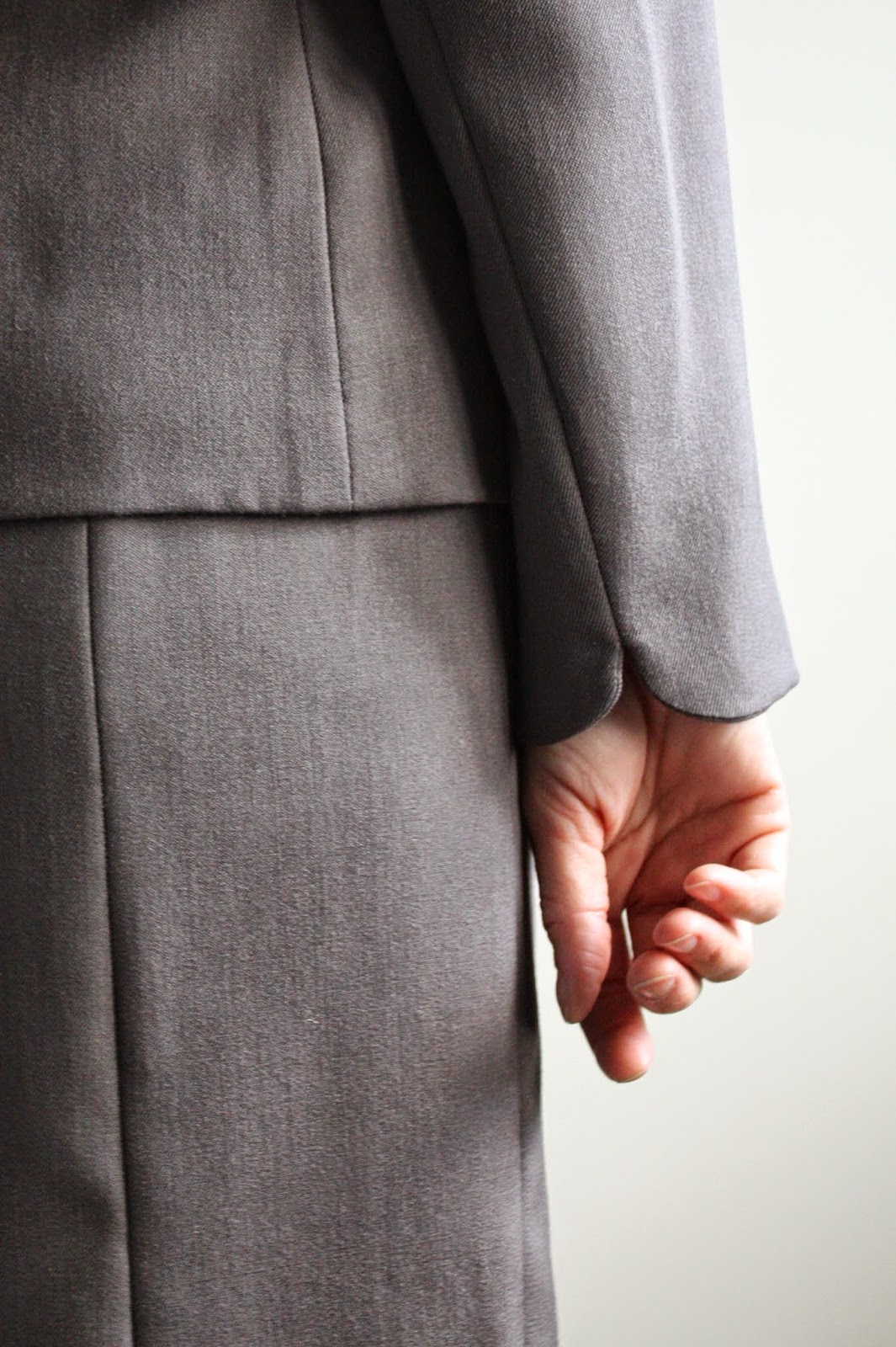 Oh very nicely done! It's hard to get tasteful “fun” details like that in a suit, but your little scallops are so perfect! Love the aqua lining too – I would've worn that in my banker days! I'll bet you can draft anything now. 🙂