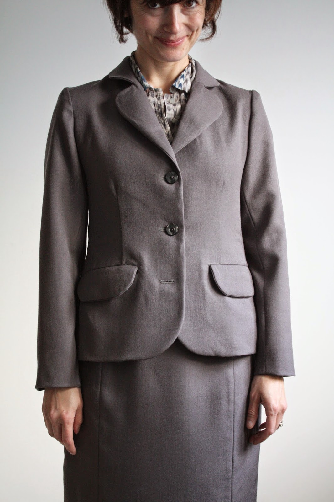 that is such a cute suit, love the scallops. and now you have a great jacket pattern you can adapt for other fabrics and details.