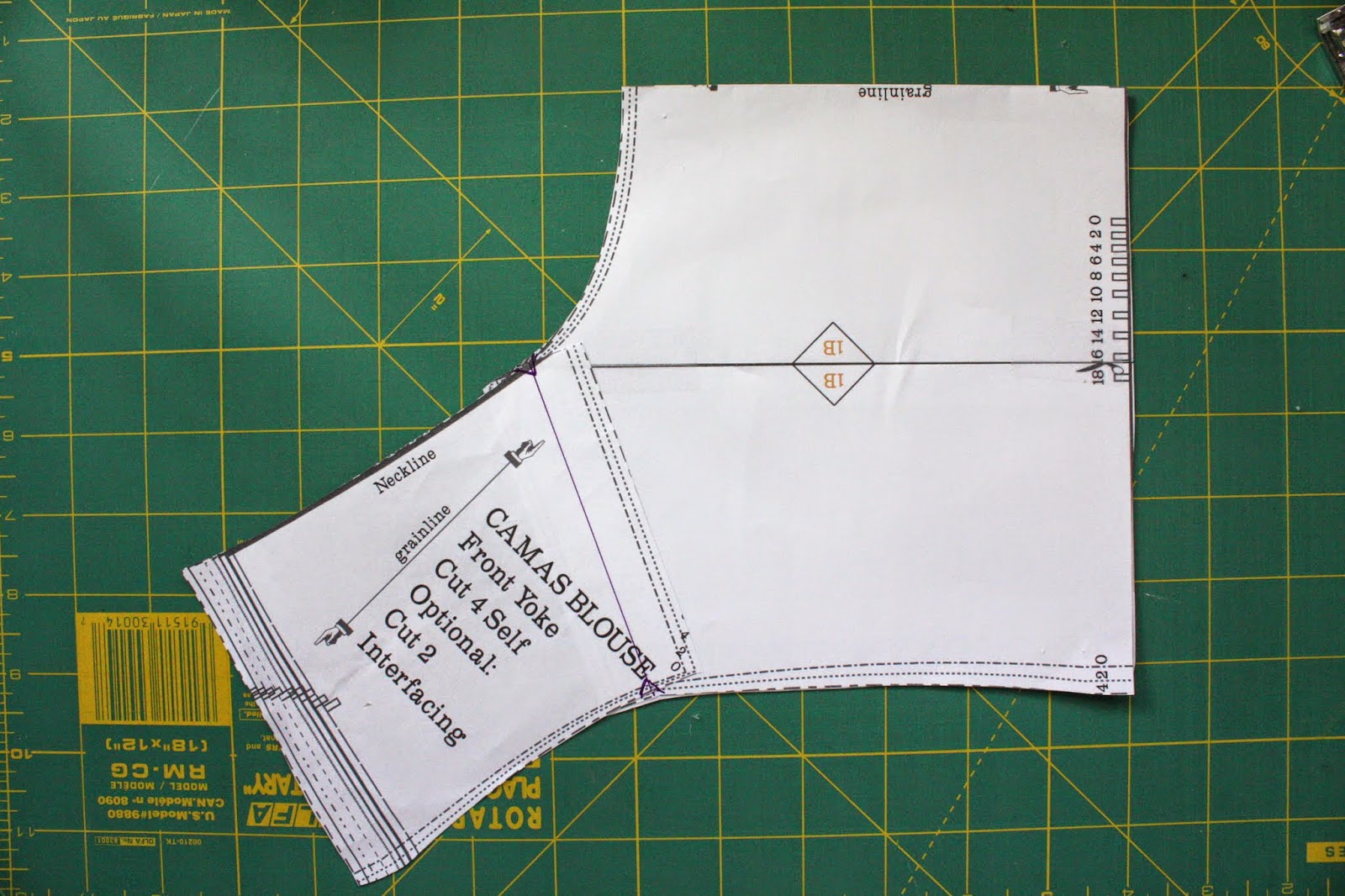 For the yoke pieces, there are front and back yokes attach at the shoulder. However, I ended up combining the front and back yokes into one piece to avoid unnecessary seams at the shoulder. It worked out great (even with the wacky grainlines).