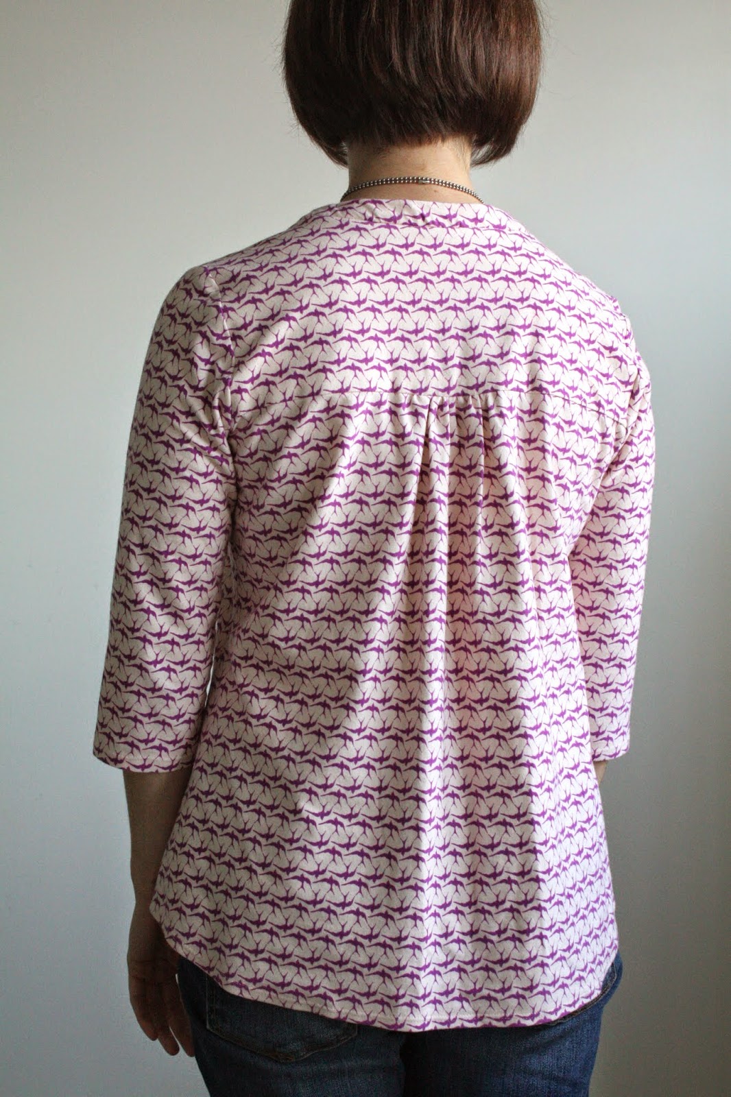 I know, right? Even with interfacing, wonky is the only outcome in my mind for knit buttonholes. I truly think that eliminating the gathers in the back would solve a lot of the overly-big fit problems. Maybe even sticking a center back seam in there to pull it in a tiny bit at the lower back. Get the pattern, lady!