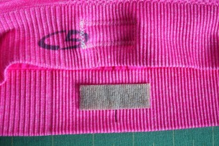 First off, get yourself a cheap sports bra from Target (mine was less than $10, not on sale) or use one you have already. I like these because I’m flat-chested, but any sports bra will do. You’ll also need a spare heart rate monitor strap that works with your monitor (or if you have a throw-caution-to-the-wind mentality, use the original strap). I use a Garmin monitor, and replacement straps that work with both Garmin and Polar monitors (check to be sure before buying) are available on Amazon for $12.50. You’ll also need some hook and loop (Velcro). I found an “soft and flexible” variety at Joann’s, which works perfectly for this application and I would highly recommend. The super soft loop side, which will go on the bra toward your skin, is good for when you don’t want to wear the monitor