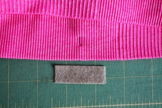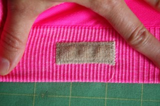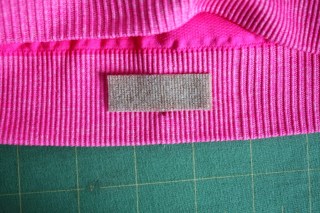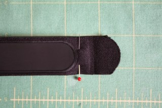 Then, cut strip of loop side of Velcro about 1.5″. It’s good to have it longer than the hook side, to allow for some wiggle room. Center the piece where you’ve pin-dicated (haha!).