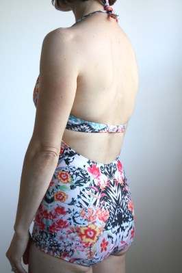 My back flub was bulging a bit more than I would like (and these two are the very best photos–my ego couldn’t handle posting the mediocre and bad ones), and the butt wasn’t quite as full-coverage as I would like, despite some pattern tweaking. At the end of the day, while a super adorable style and good drafting/ instructions, the Abigail suit just isn’t the style for me.