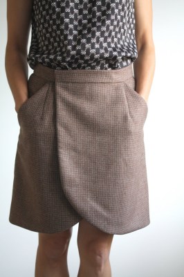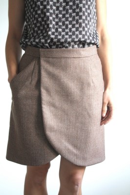 The fabric is a bit thicker than the suggested fabrics, and I realized I sewed 5/8″ seams before reading the instructions (SA is 1/2″ FYI!), so the skirt overlap is about 1/2″ shy of the proper location (right at the dart). Thankfully, it’s a wrap skirt and while it doesn’t look perfect, it’s still wearable.