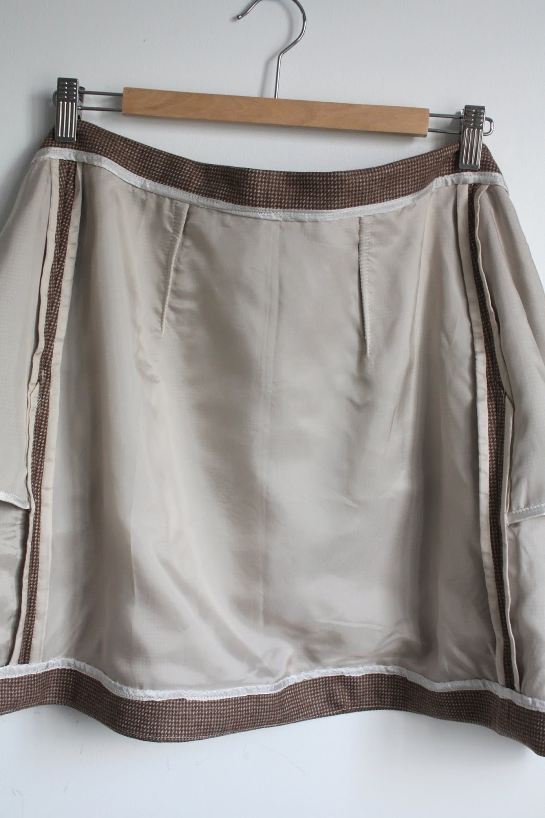Following the suggestion of Shelley from Bartacks and Singletracks (see two of her skirts here, and a little girl version here), I decided to underline (with Bemberg) the skirt and Hong Kong finish some strategic seams. (See my tutorial for details.)